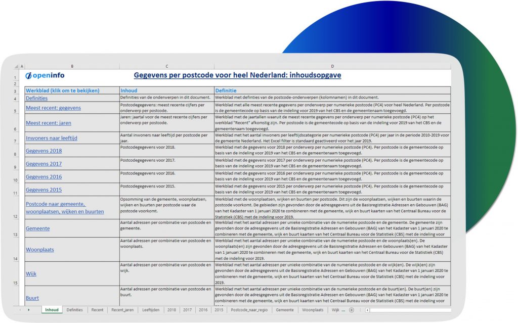 Download het Excel bestand met heel veel kwaliteitsinformatie voor alle numerieke postcodes in Nederland.